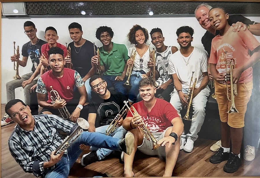 Je suis effectivement trompettiste dans l'Orchestre de la Suisse Romande (OSR) et professeur à la Haute Ecole de Musique de Genève. Je suis également professeur à l'Académie NEOJIBA à Salvador de Bahia au Brésil depuis maintenant quatorze ans. J'y vais deux fois par an pour enseigner pendant une dizaine de jours, même si la pandémie avait bloqué ça un temps.