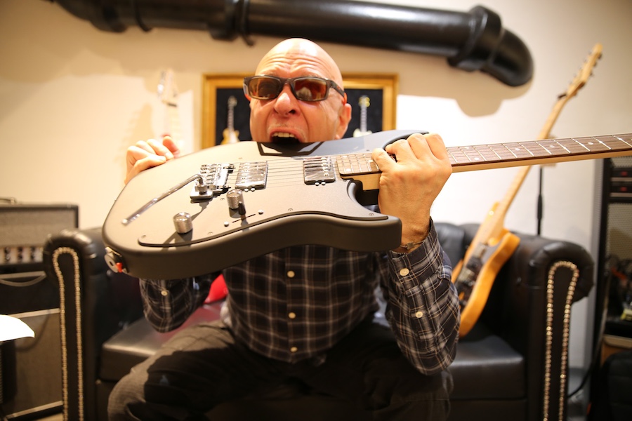 Ma première guitare était une Aria Pro II PE 460, qui était une copie de Les Paul, et qui était d’ailleurs aussi lourde qu’une Les Paul. J'étais plutôt un grand tout maigre, et je me souviens que ça me ruinait l’épaule. Mais j’ai gardé cette gratte super longtemps, parce qu’Aria faisait des super copies. Je me souviens qu’est une guitare pour laquelle ma mère avait payé 400 francs à l’époque (NdR : environ 100 CHF), et que j’avais bariolée pour qu’elle ressemble un peu à une guitare de Van Halen. J’avais aussi un petit ampli Gorilla, et pour la disto je me suis bidouillé une pédale à partir d’un transistor, parce que j’avais lu dans un magazine qu’on pouvait faire ça en utilisant la sortie casque comme input. Ça faisait un son abominable (rires). Et puis ma maman m’a offert la DS-1, la fameuse, quand elle a vu que je passais des heures tous les jours sur l’instrument, et c’était un game-changer.