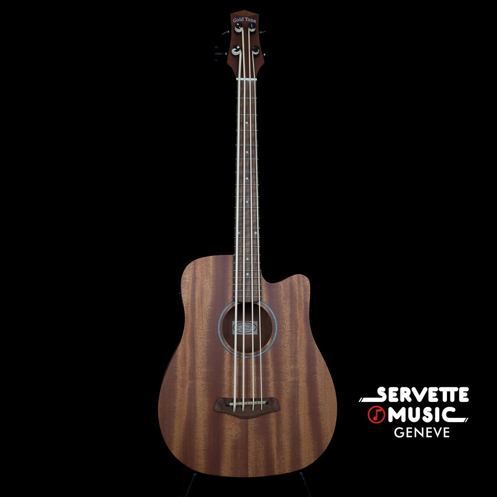 The M-Bass's nato mini-dreadnaught cutaway body has an arched back and comfort-beveled top for playing comfort. Gold Tone's specially developed Aquila high-tension polymer (Neoprene) strings are easy on the fingers and really bring out that bottom end.